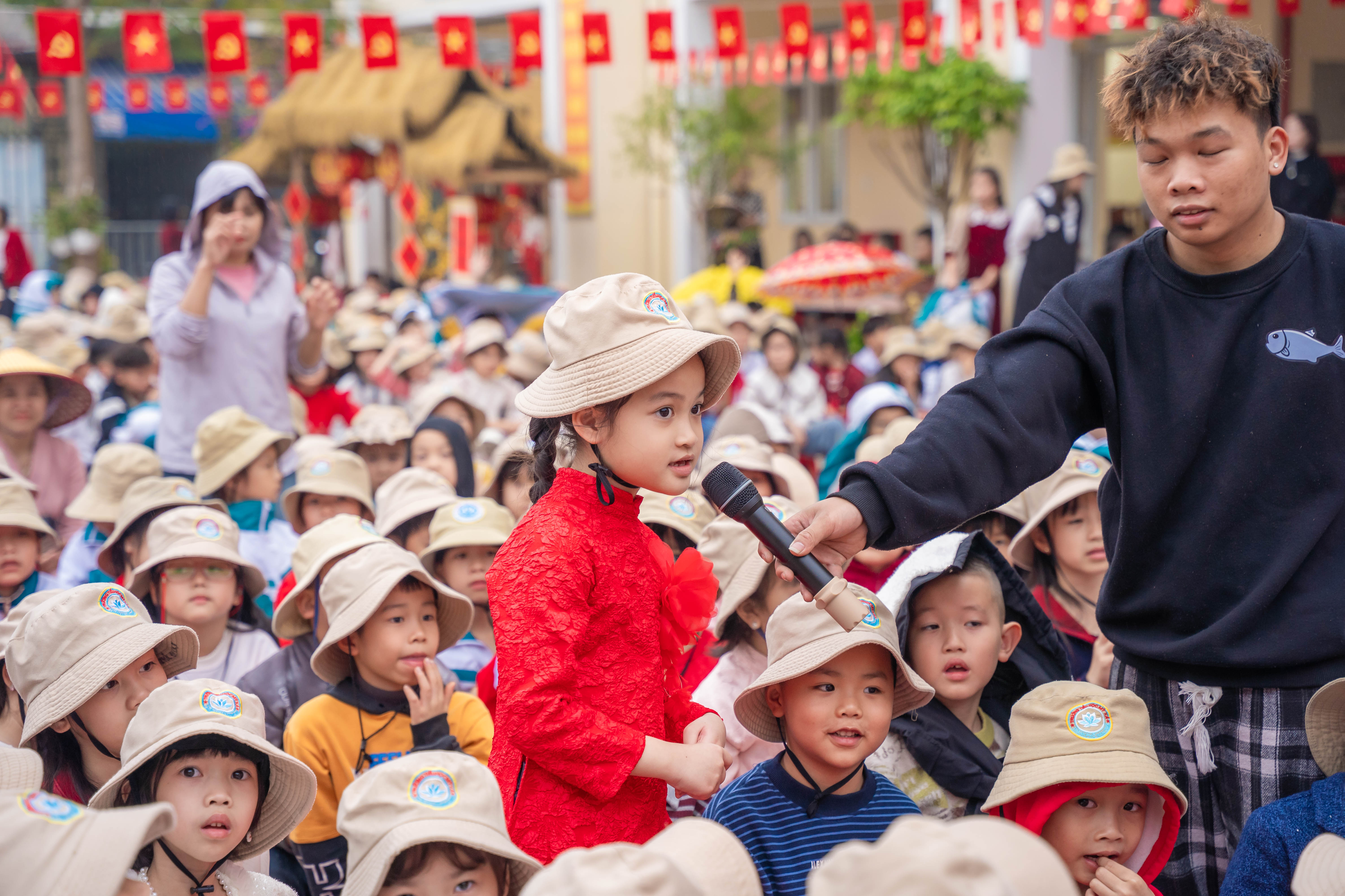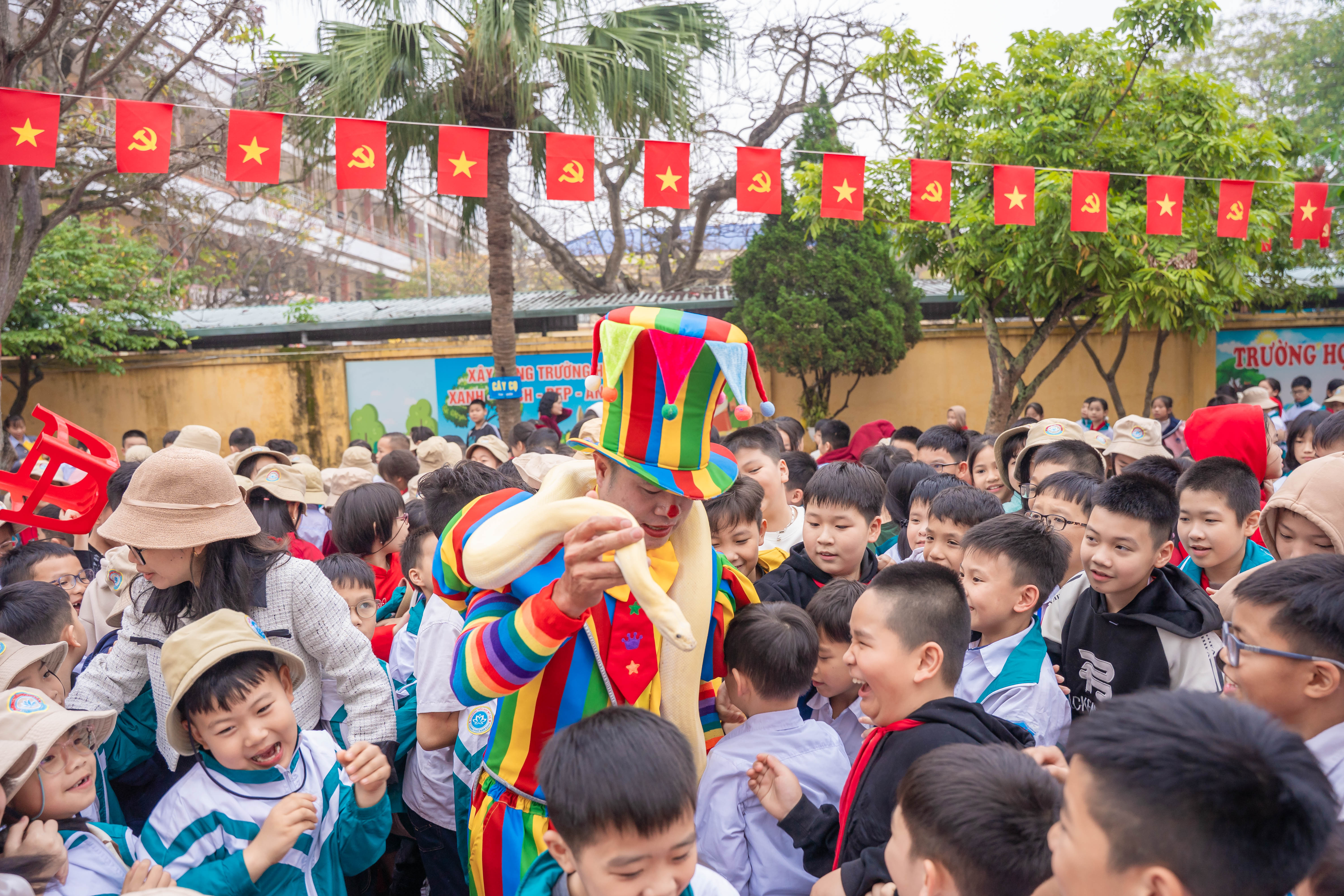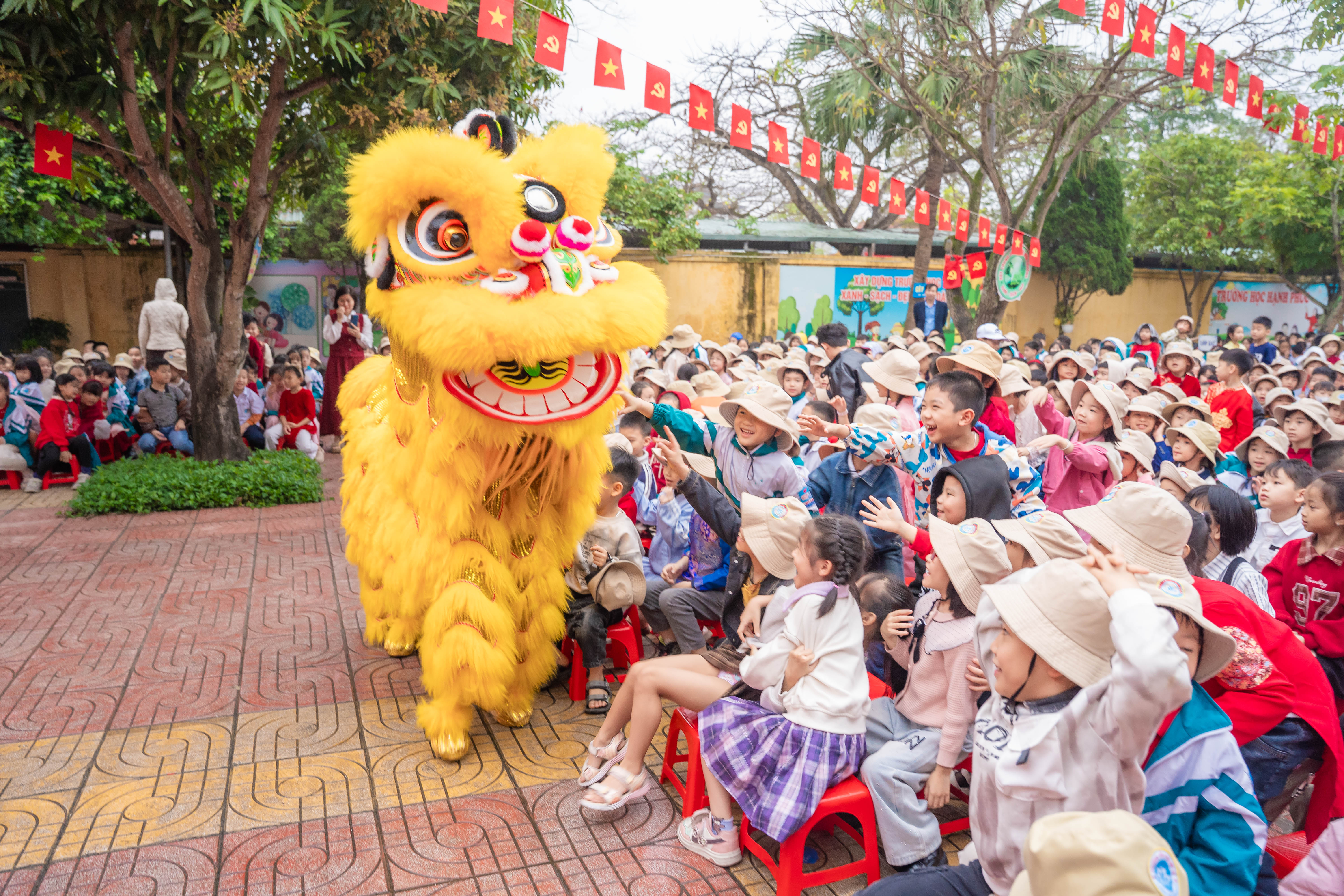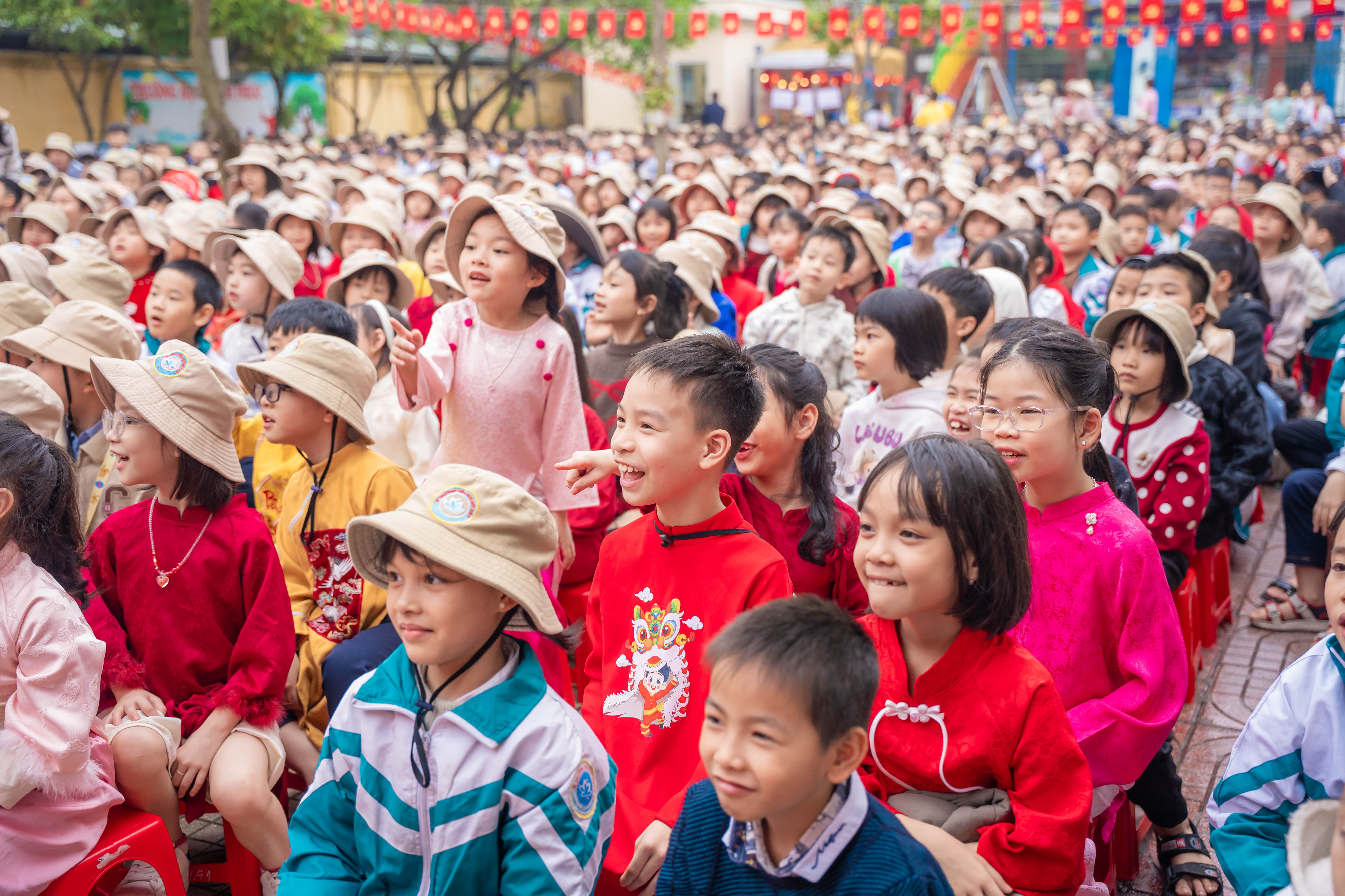 Ngay từ sớm, sân trường đã rộn ràng tiếng cười nói. Các em học sinh trong trang phục rực rỡ sắc màu, háo hức tham gia chuỗi hoạt động phong phú. Chương trình văn nghệ đặc sắc với những tiết mục múa hát mùa xuân vui tươi đã thu hút sự cổ vũ nhiệt tình từ các em học sinh và phụ huynh. Đặc biệt, phần biểu diễn xiếc với những màn tung hứng, nhào lộn khéo léo đã mang đến sự thích thú, ngạc nhiên và tiếng vỗ tay không ngớt.
