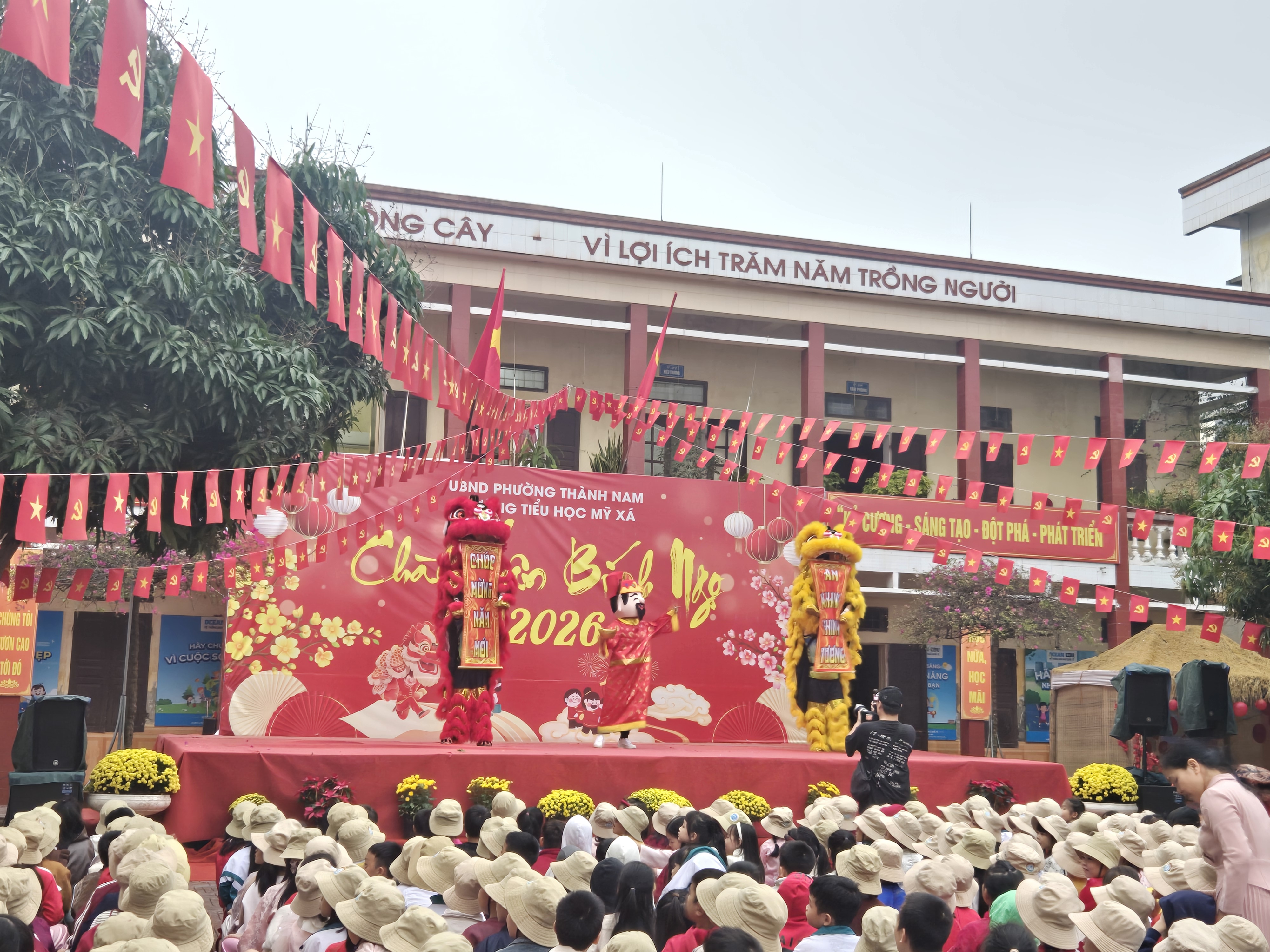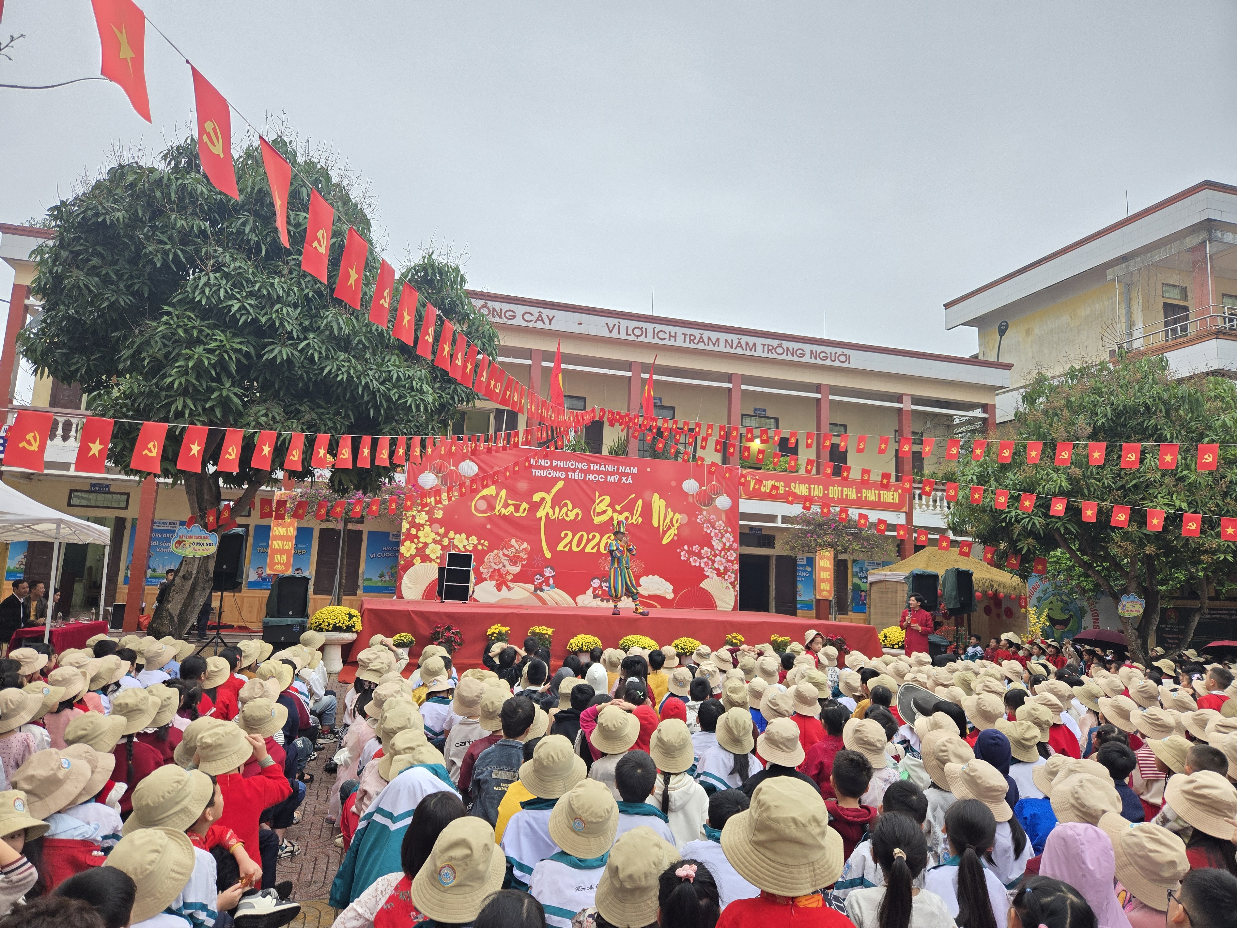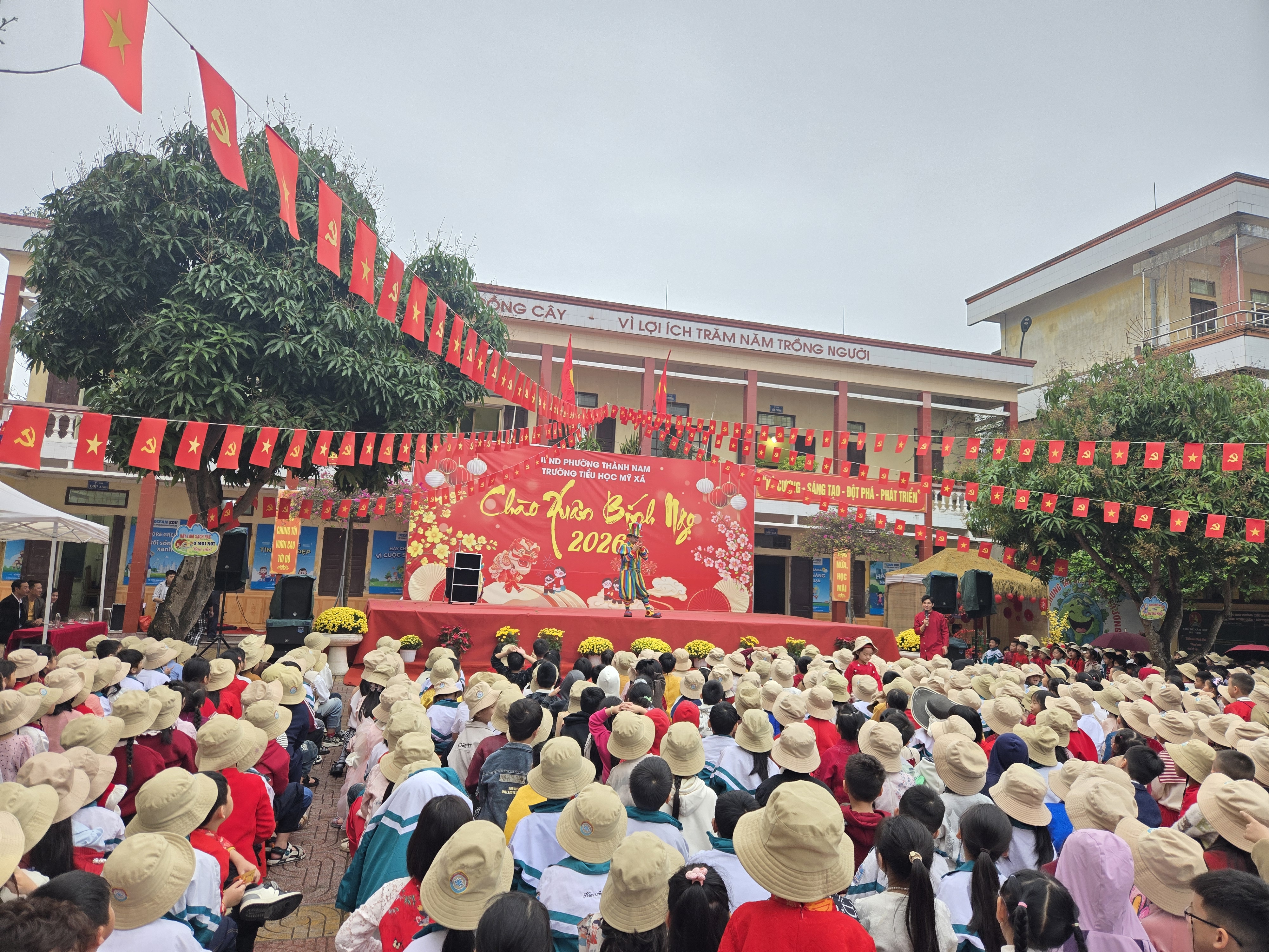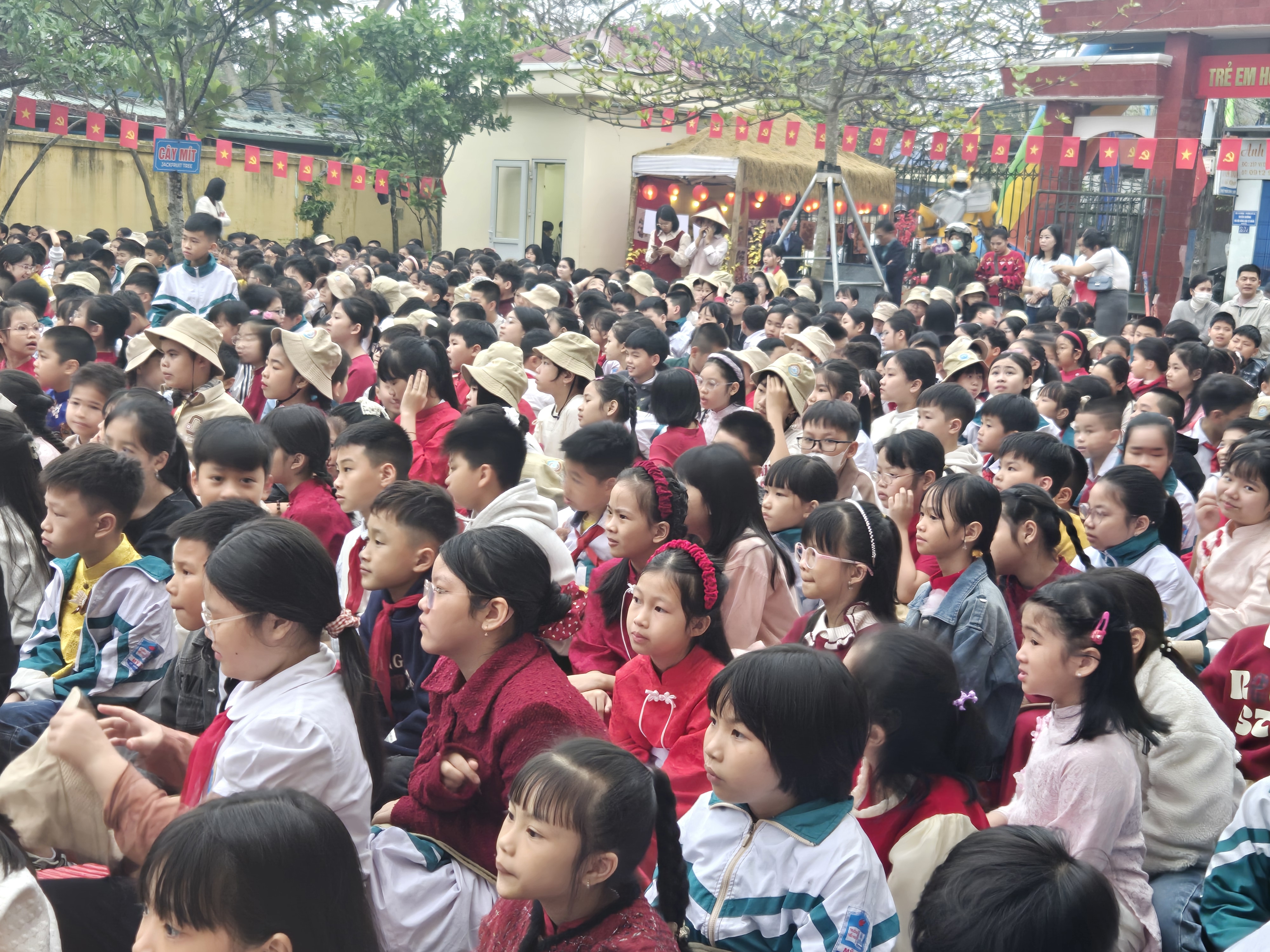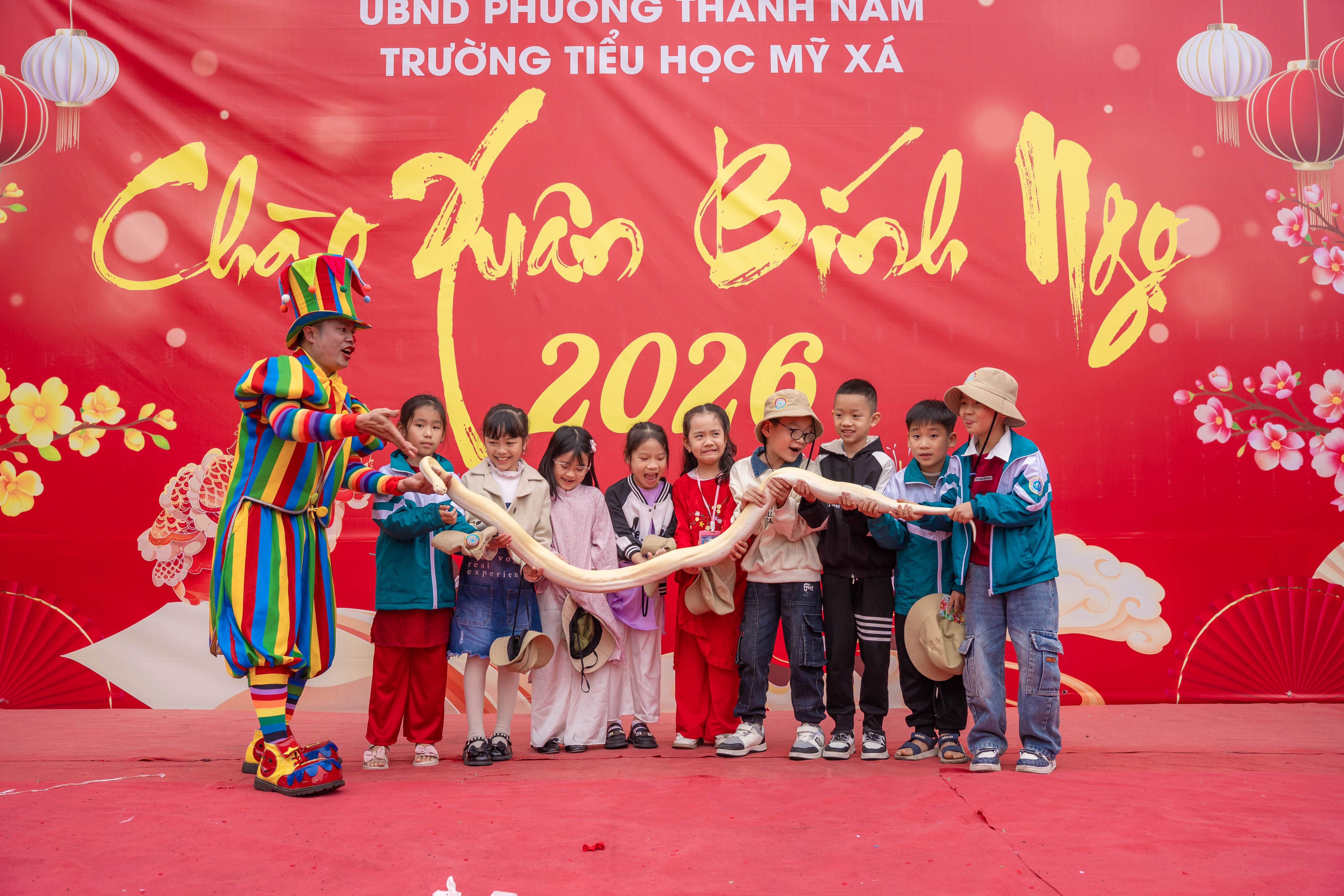 Ngay từ sớm, sân trường đã rộn ràng tiếng cười nói. Các em học sinh trong trang phục rực rỡ sắc màu, háo hức tham gia chuỗi hoạt động phong phú. Chương trình văn nghệ đặc sắc với những tiết mục múa hát mùa xuân vui tươi đã thu hút sự cổ vũ nhiệt tình từ các em học sinh và phụ huynh. Đặc biệt, phần biểu diễn xiếc với những màn tung hứng, nhào lộn khéo léo đã mang đến sự thích thú, ngạc nhiên và tiếng vỗ tay không ngớt.